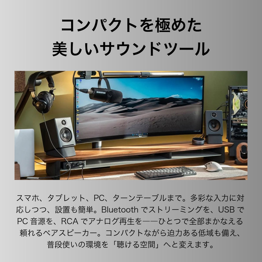 そのサイズに惑わされないでください。この小さなスピーカーには、想像以上のサウンドが詰まっています。クリアで豊か、そして力強い音は、パソコン用途や小さな部屋に理想的です。