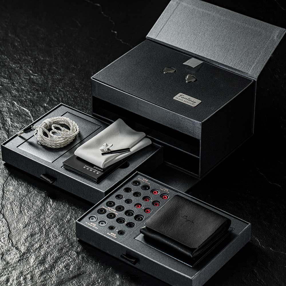 ・同梱品:Fantasyイヤホン(イヤーチップ付)、1.3mイヤホンケーブル(3.5mmシングルエンド)、イヤーチップ(12ペア)、イヤホンポーチ、ケーブルクリップ、クリーニングクロス、クリーニングクロス、ユーザーマニュアル