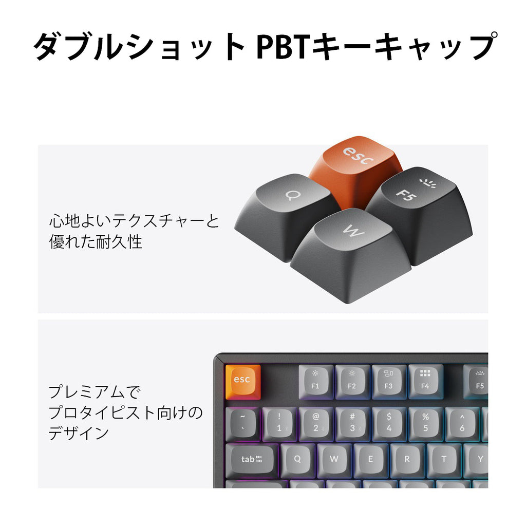 Macレイアウトを採用しつつ、Windowsにも対応。Macユーザー向けに、Appleキーボードと同じマルチメディアキーやファンクションキーを備えながら、より優れた打鍵感を提供します。 さらに、Keychron Launcherウェブアプリを使用すれば、MacおよびWindowsデバイス向けに異なるキーマップを設定可能です。キーボードには、macOSとWindows両方のキーキャップに加え、追加のESCキーとEnterキーも付属しており、OS間のスムーズな切り替えを実現します。