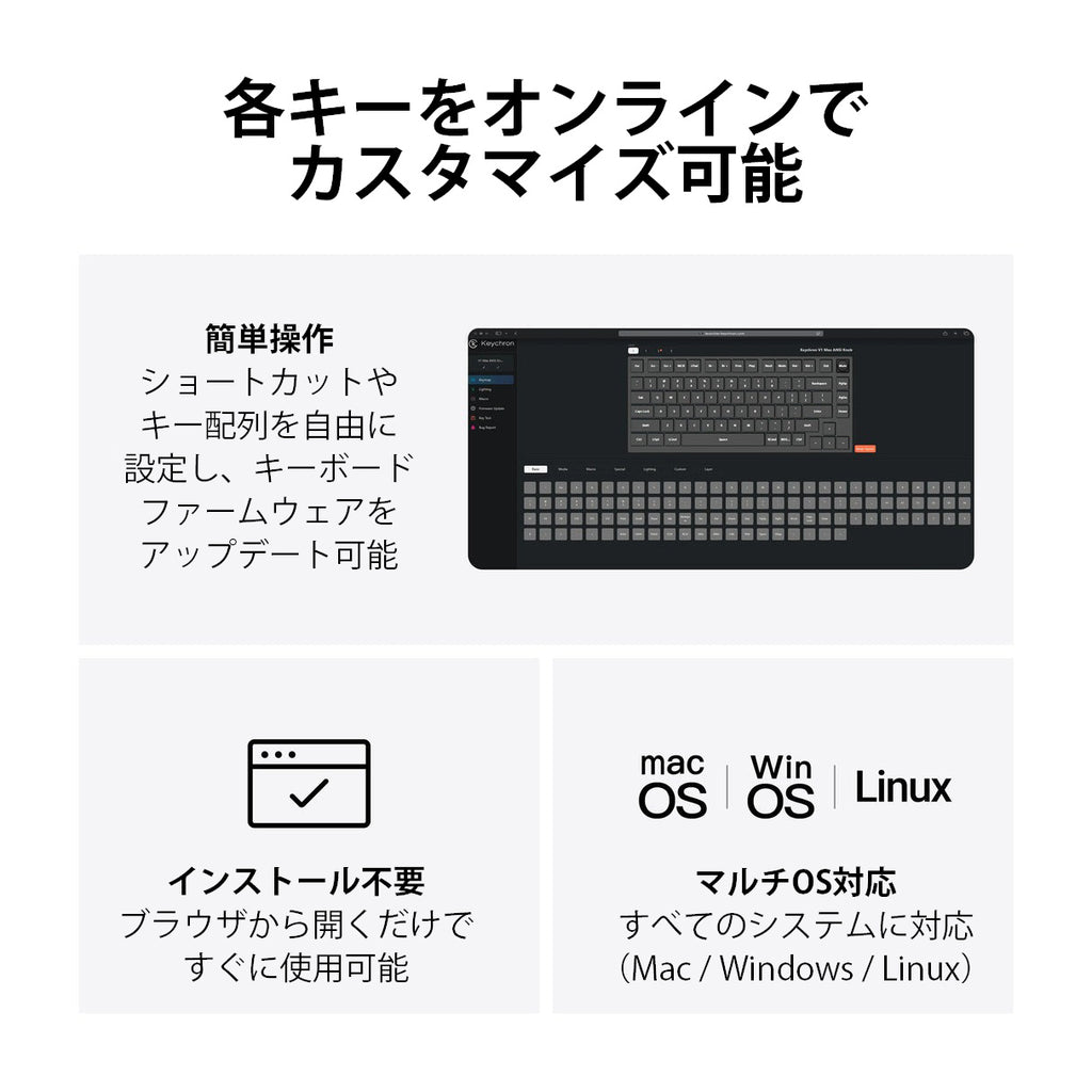 Keychron Launcherウェブアプリを使えば、各キーを簡単にカスタマイズできます。