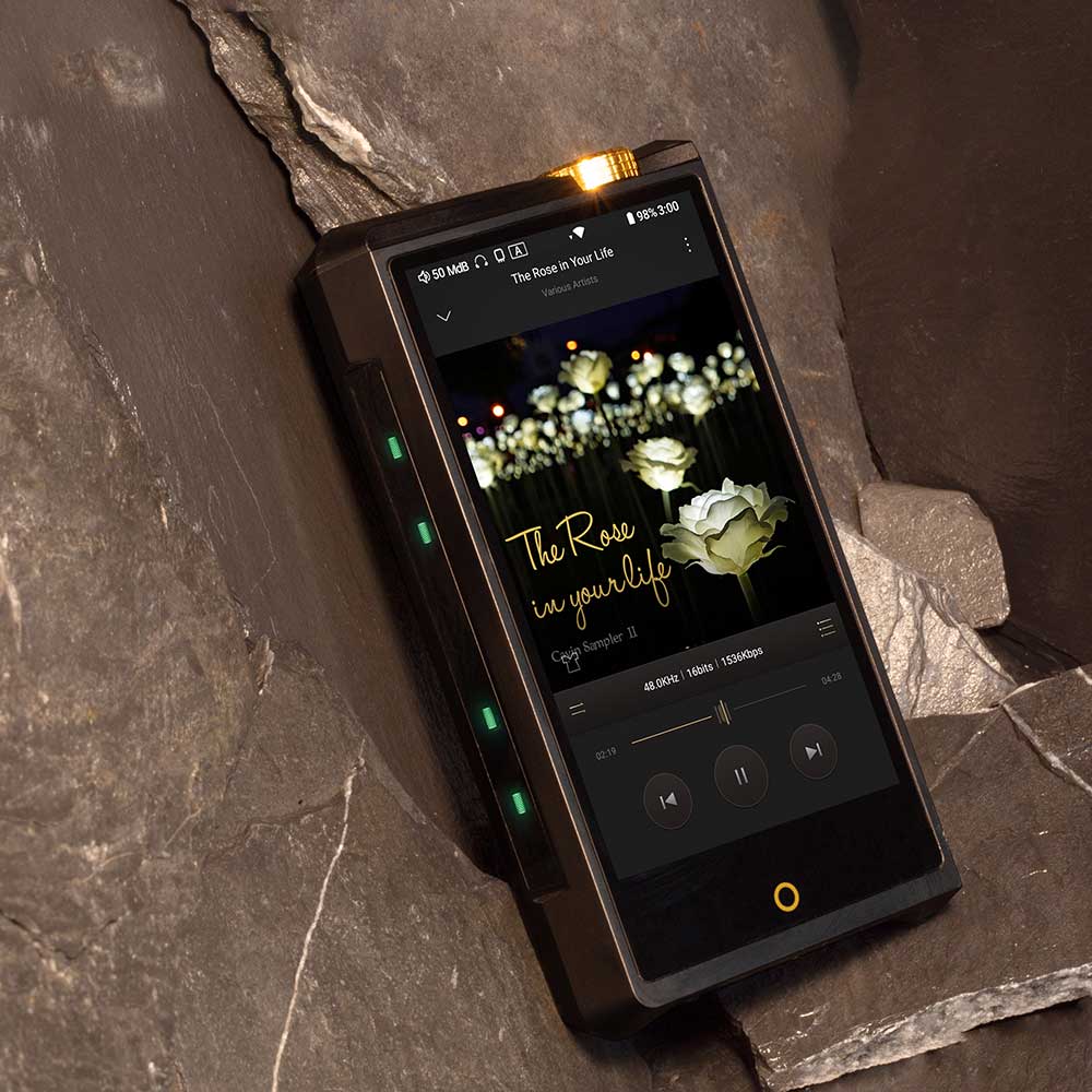 ・持続時間:~11時間(3.5mmシングルエンド/P/ソリッドステートアンプ)、 ~10時間(4.4mmバランス/P/ソリッドステートアンプ)、 ~10時間(3.5mmシングルエンド/P/真空管アンプ)、 ~9時間(4.4mmバランス/P/真空管アンプ)、 ~10時間(3.5mmシングルエンド/P+/ソリッドステートアンプ)、 ~9時間(4.4mmバランス/P+/ソリッドステートアンプ)、 ~9時間(3.5mmシングルエンド/P+/真空管アンプ)、 ~8時間(4.4mmバランス/P+/真空管アンプ)、 ~8時間(4.4mmバランス/P/真空管/Class A)