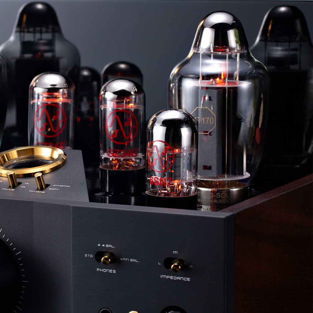 多段階の真空管レギュレーション電源回路により、各増幅ステージへ独立して電力を供給します。Soul 170HAは、JJ製 GZ34S 整流管を2本採用。ドライバーステージへの高電圧供給を担い、より豊かで繊細な真空管サウンドを実現します。