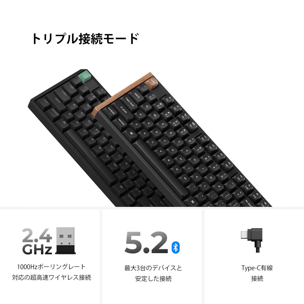 Nキーロールオーバー(NKRO):無線・有線ともに対応