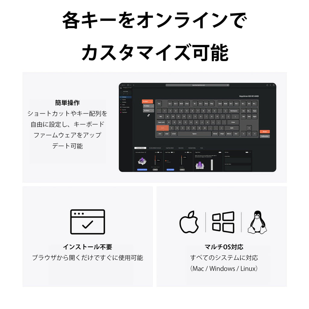 Keychron Launcherウェブアプリを使えば、各キーを簡単にカスタマイズできます。